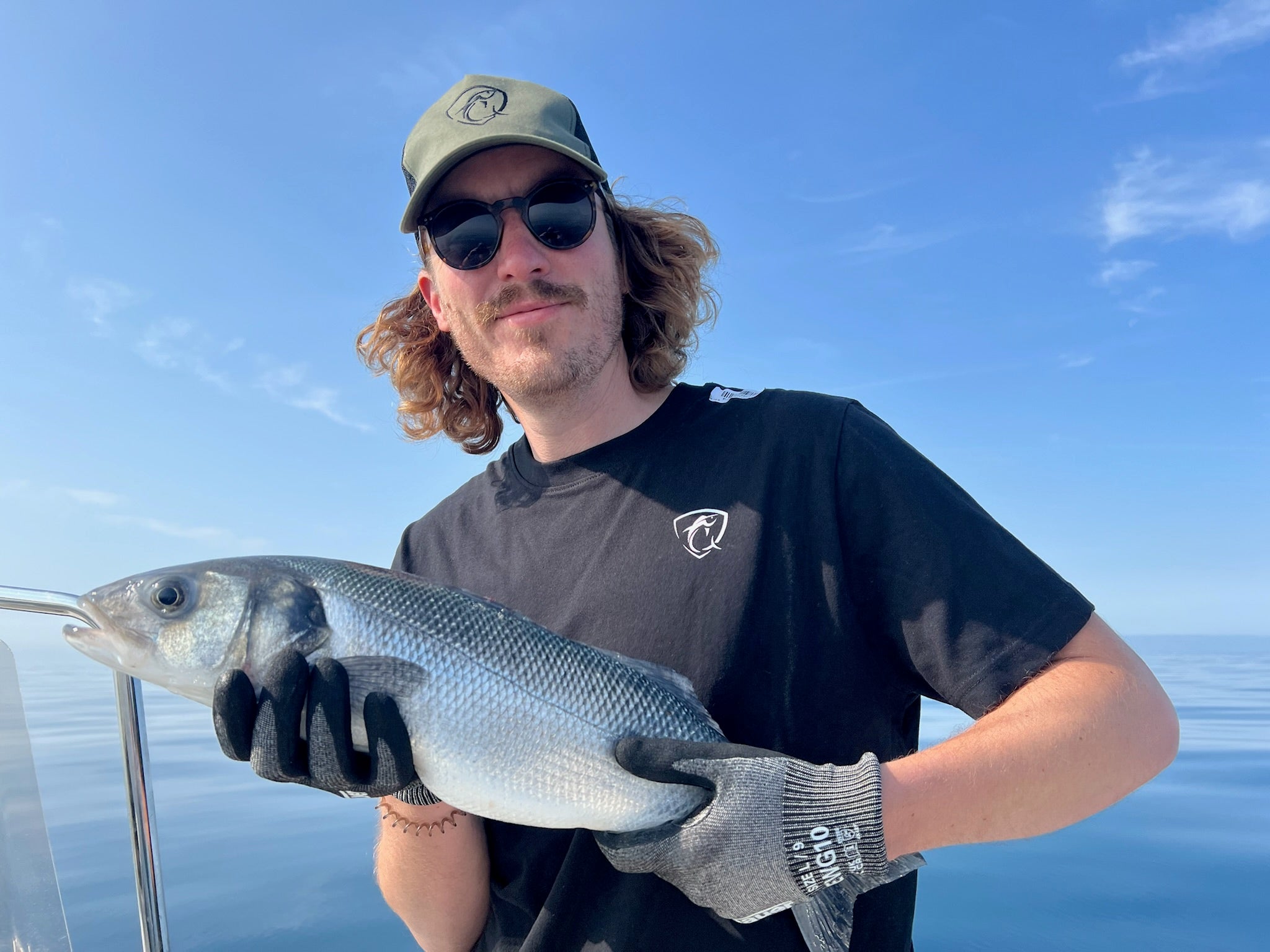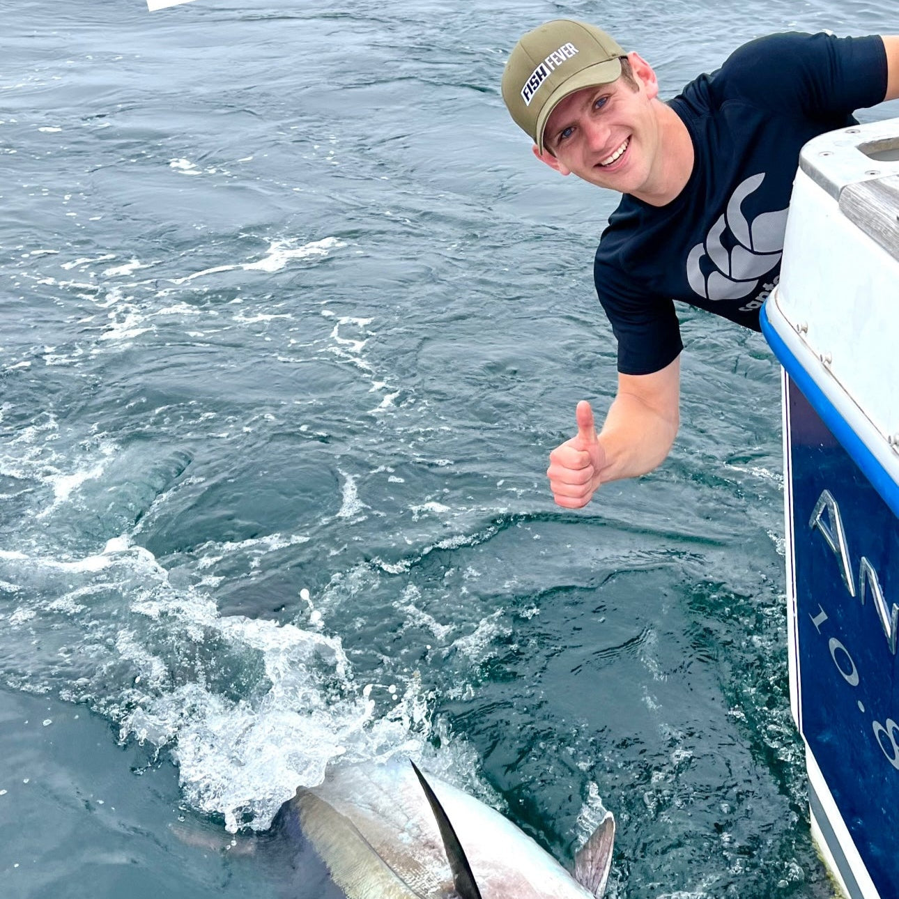 Harry, first Bluefin Tuna of the season. Wearing the Feverback Relaxed Crew & Shield Flexfit Cap
